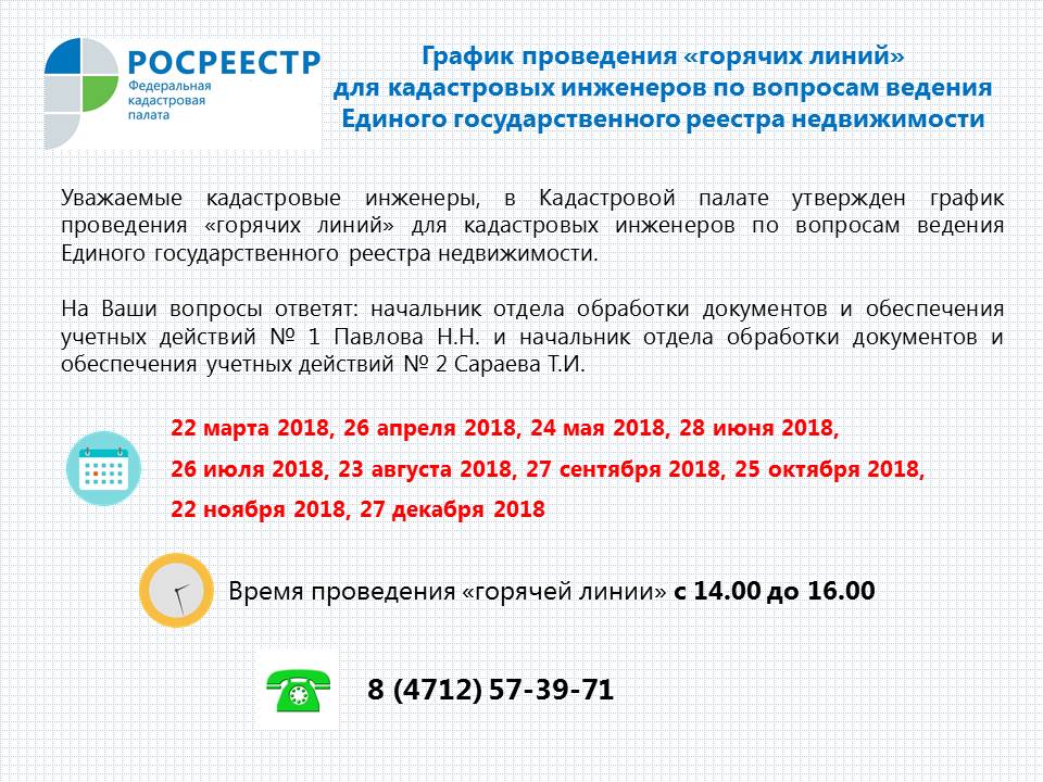 График горячих линий для кадастровых инженеров